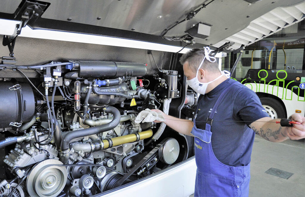Com base nesse compromisso, há procedimentos específicos sempre que um ônibus Mercedes-Benz ou Setra chega na oficina para manutenção ou conserto. Em cada Centro de Serviços, nossos funcionários tomam muito cuidado para que o risco de infecção pelo vírus seja minimizado